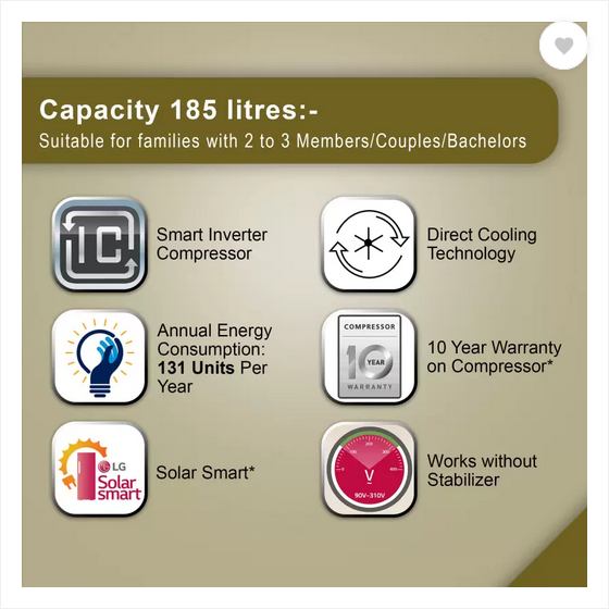 Refrigerator Fresh Food Capacity | 171 Litres |